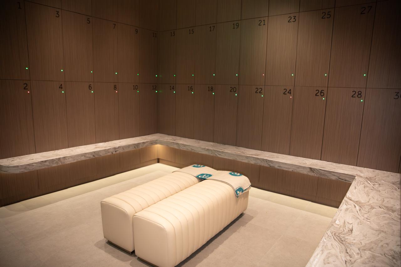 Smart lockers, plush robes, towels, and spacious showers—everything you need, set up for a smooth, unhurried flow.